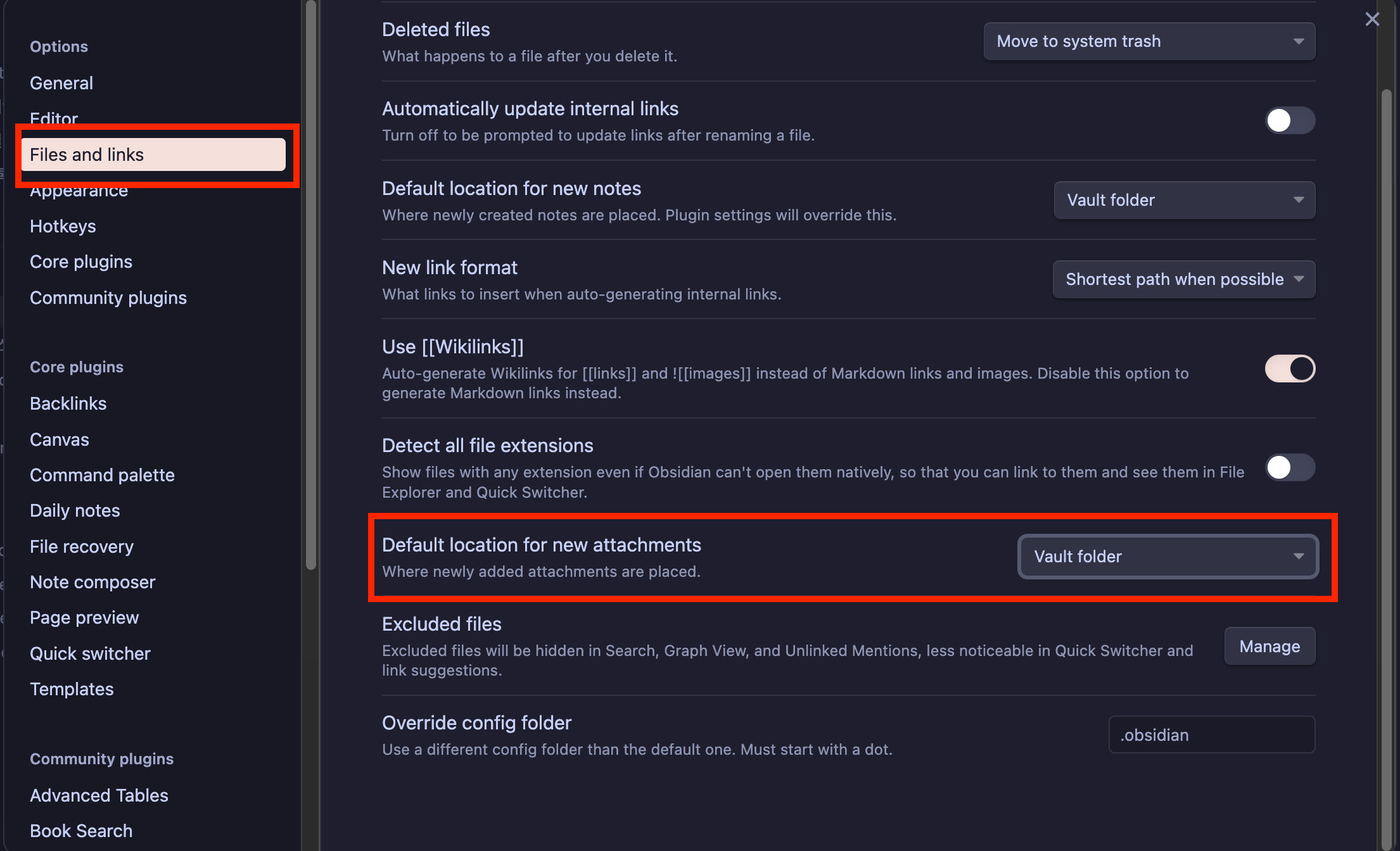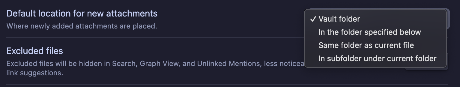 이 옵션으로 Vault가 첨부파일들로 인해 중구난방 복잡해지는 것을 방지할 수 있습니다.