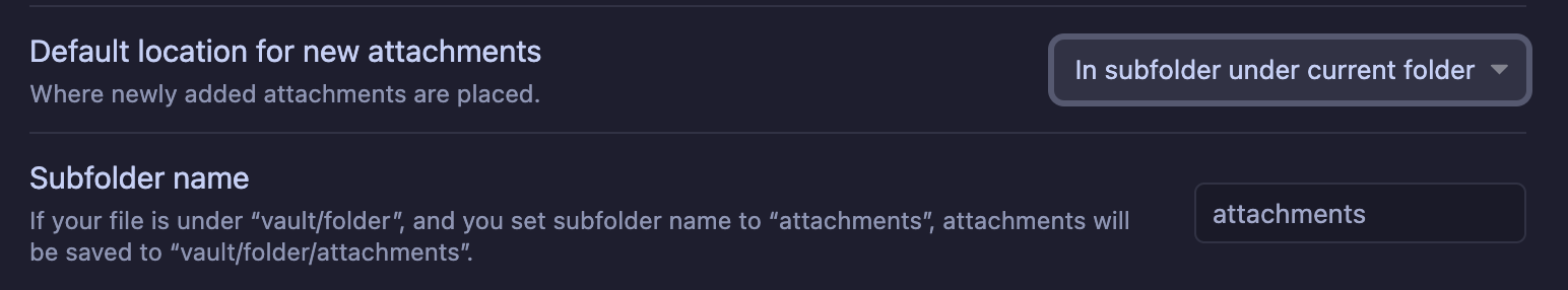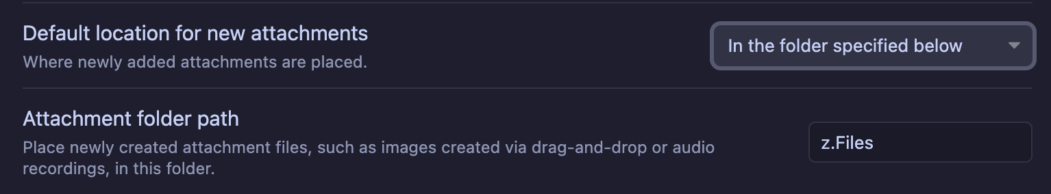 옵시디언 설정에서 첨부파일이 저장되는 위치를 변경할 수 있습니다.