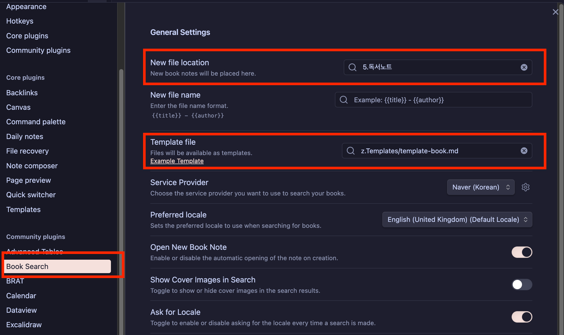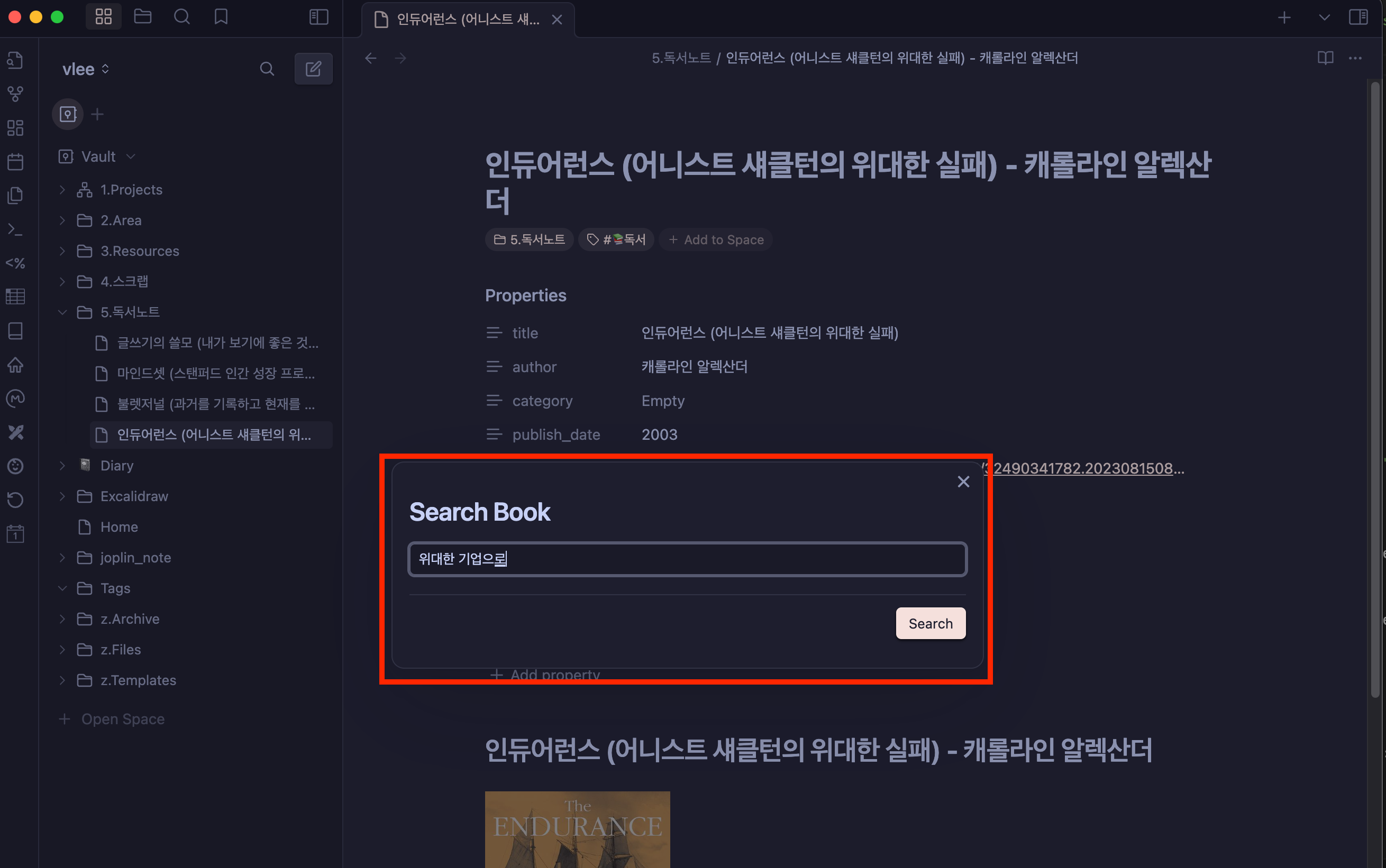 옵시디언(Obsidian) 플러그인 - 독서노트 작성 Book Search 본문