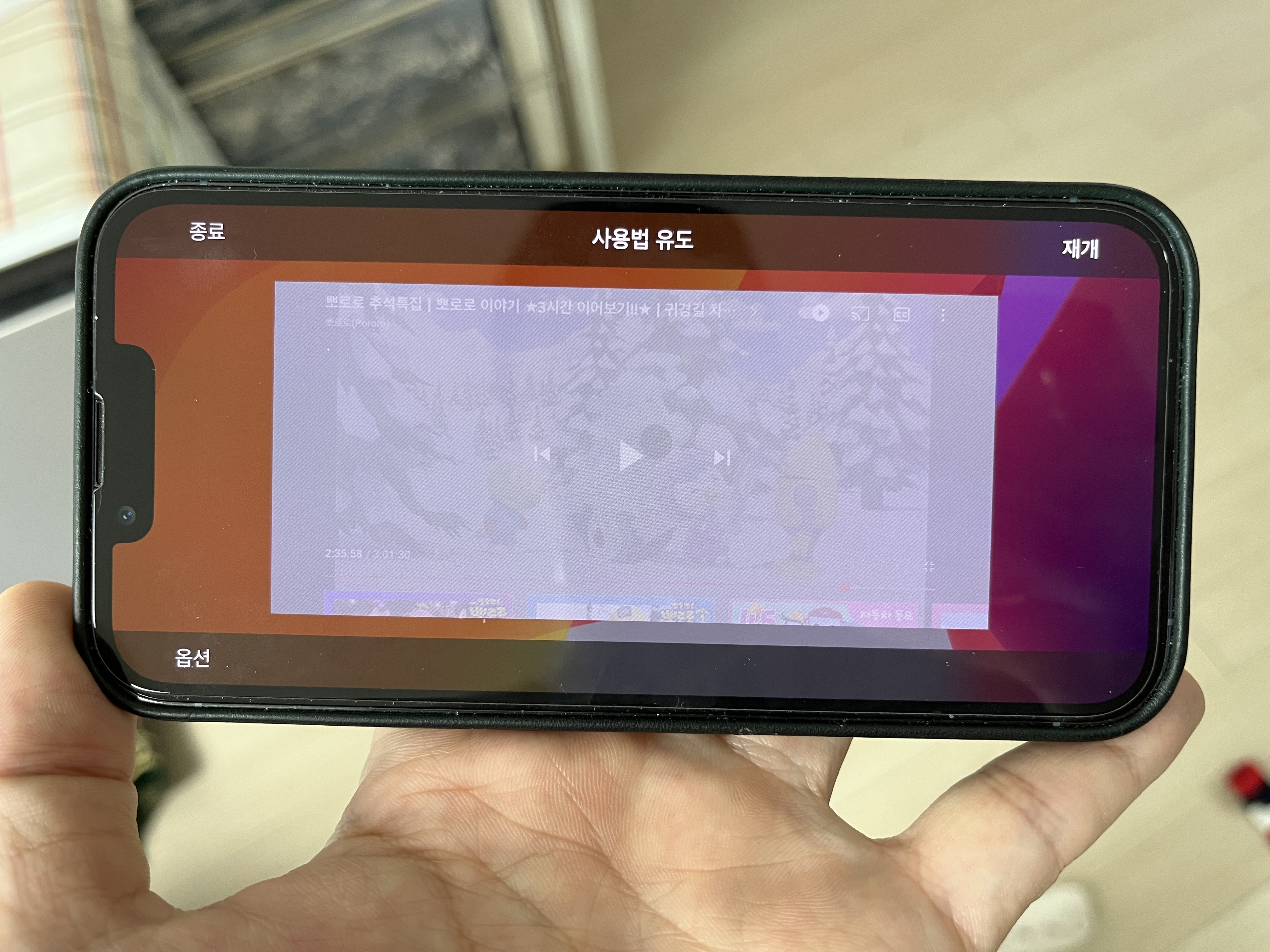 잠깐 다른 볼일을 보려고 영상을 보여줬던 건데 아이가 터치를 하는 바람에 화면이 전환되서 다시 원래 보던 영상을 틀어주느라 여간 귀찮은 게 아니죠.