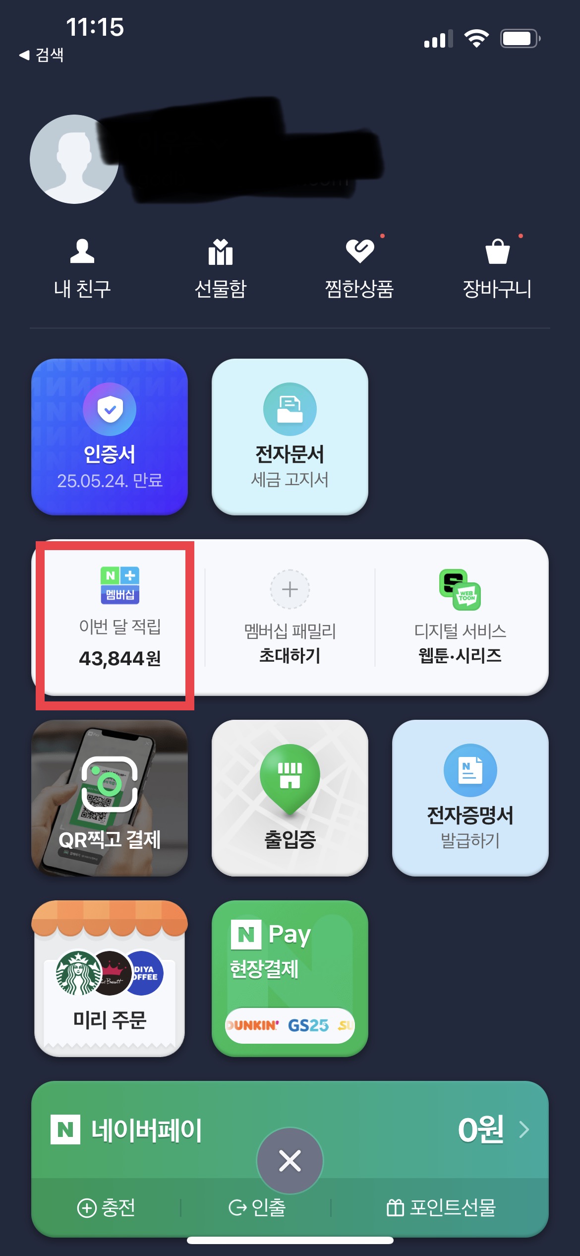 네이버플러스 멤버십 관리 메뉴를 선택합니다.